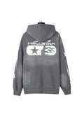 Fleece Zip-Up is made with custom milled fleece fabric, finished with a vintage wash and potassium spray all manufactured in Los Angeles. Distressed. Hellstar graphics screen printed on the chest, back, and sleeves. This garment fits slightly oversized.